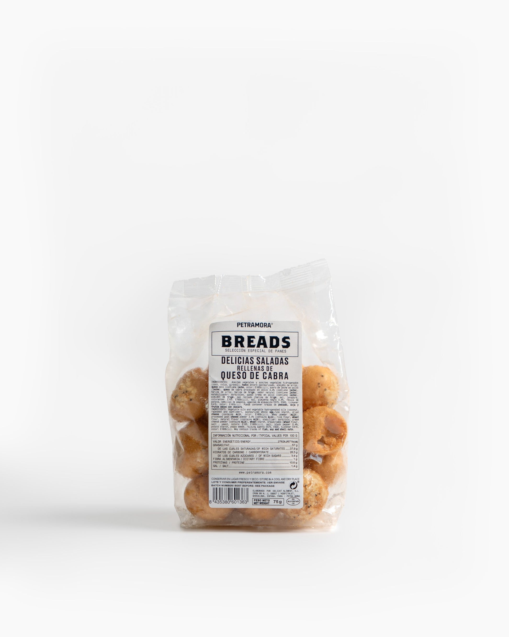 Pequeños y originales crackers en forma de bolitas rellenas de queso de cabra.