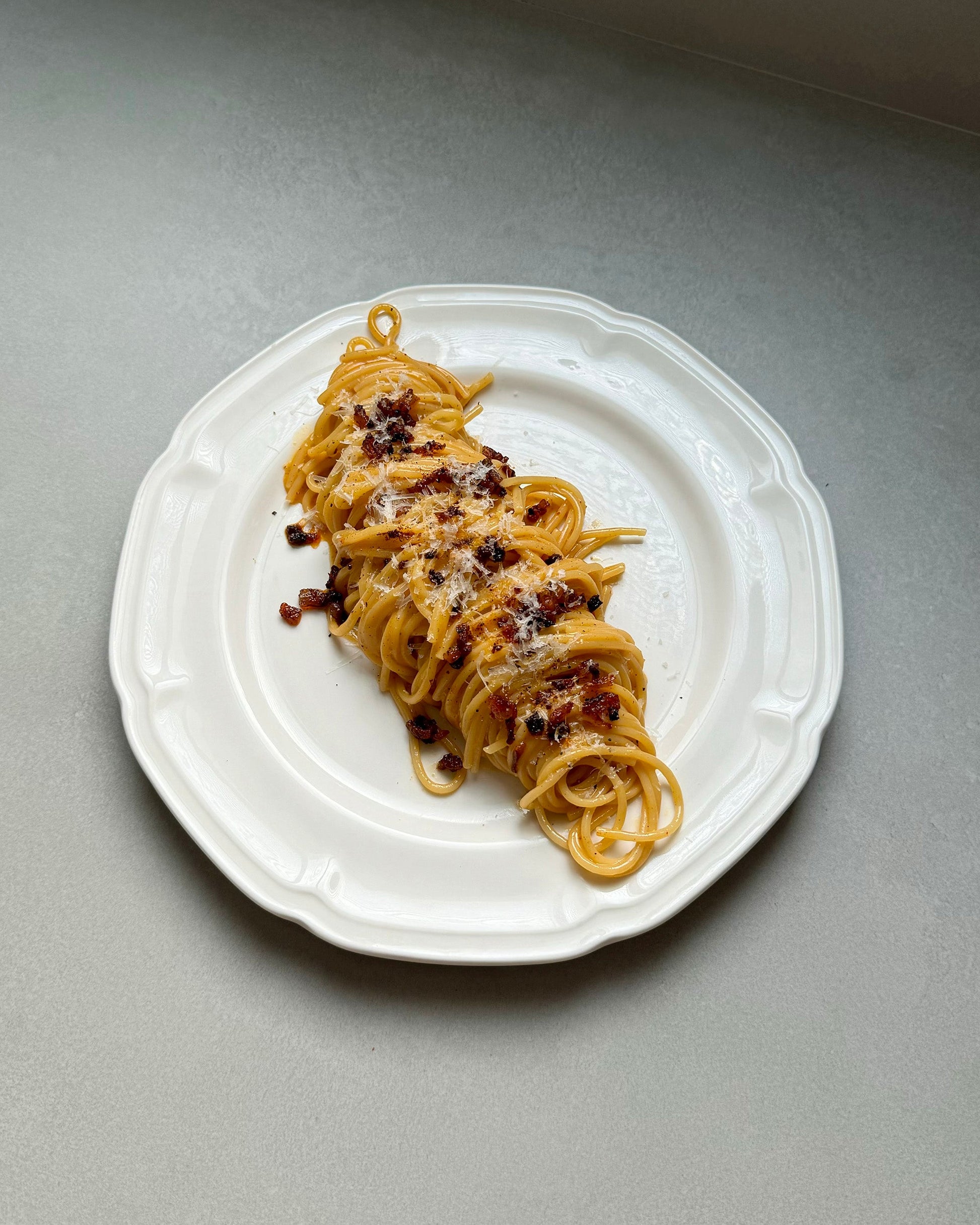 *Receta de pasta a la carbonara y foto by Gerard Blanco @blancooks
