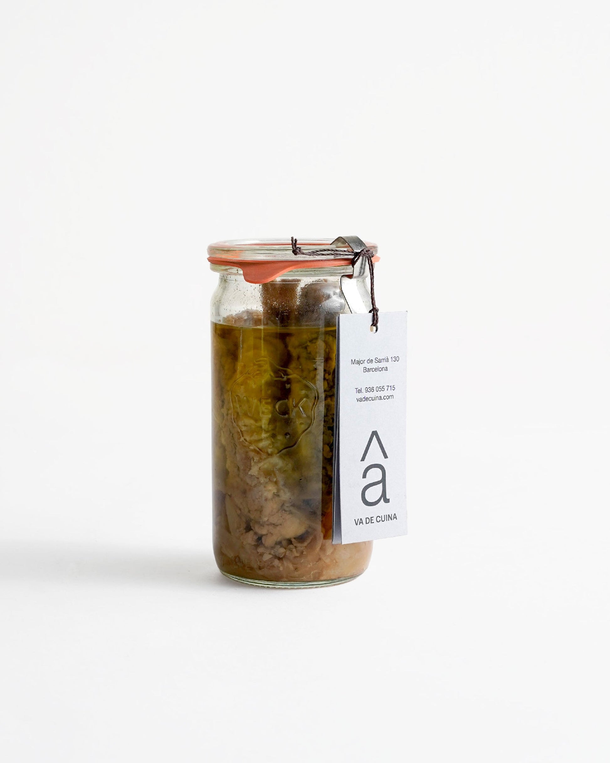 Sardinas en escabeche clásico de cebolla, ajo y hierbas elaboradas por el cocinero Jordi Vilà, Premi Nacional de Gastronomía, con ingredientes frescos y tradición artesanal.