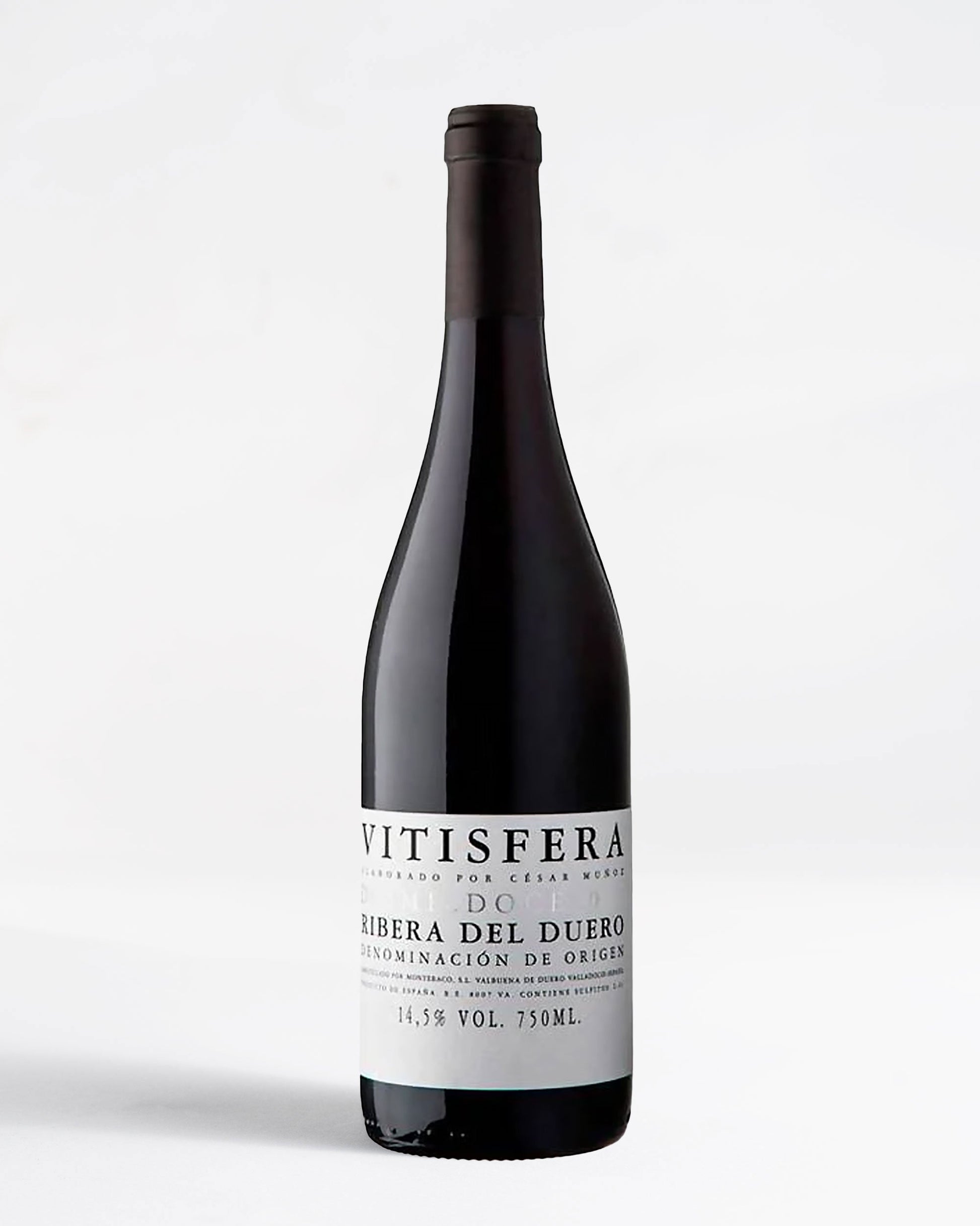 El enólogo César Muñoz elabora este vino tinto DO. Ribera del Duero llamado Vitisfera, que mantiene el perfil más auténtico de la uva Tinta del País en los viñedos más altos y orientales de esta D.O. con 12 meses de crianza en barricas de roble francés.