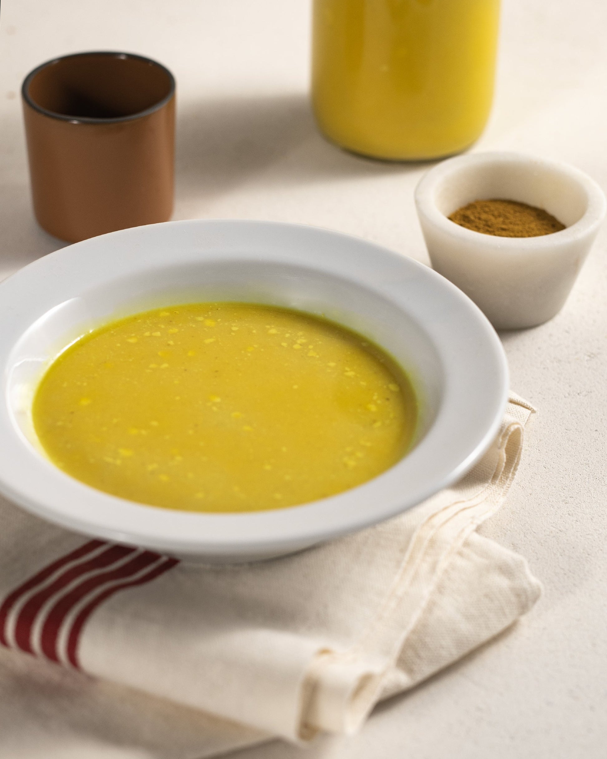 Crema india elaborada con leche de coco y lentejas rojas, que aportan textura; y cúrcuma y jengibre, que aportan carácter.