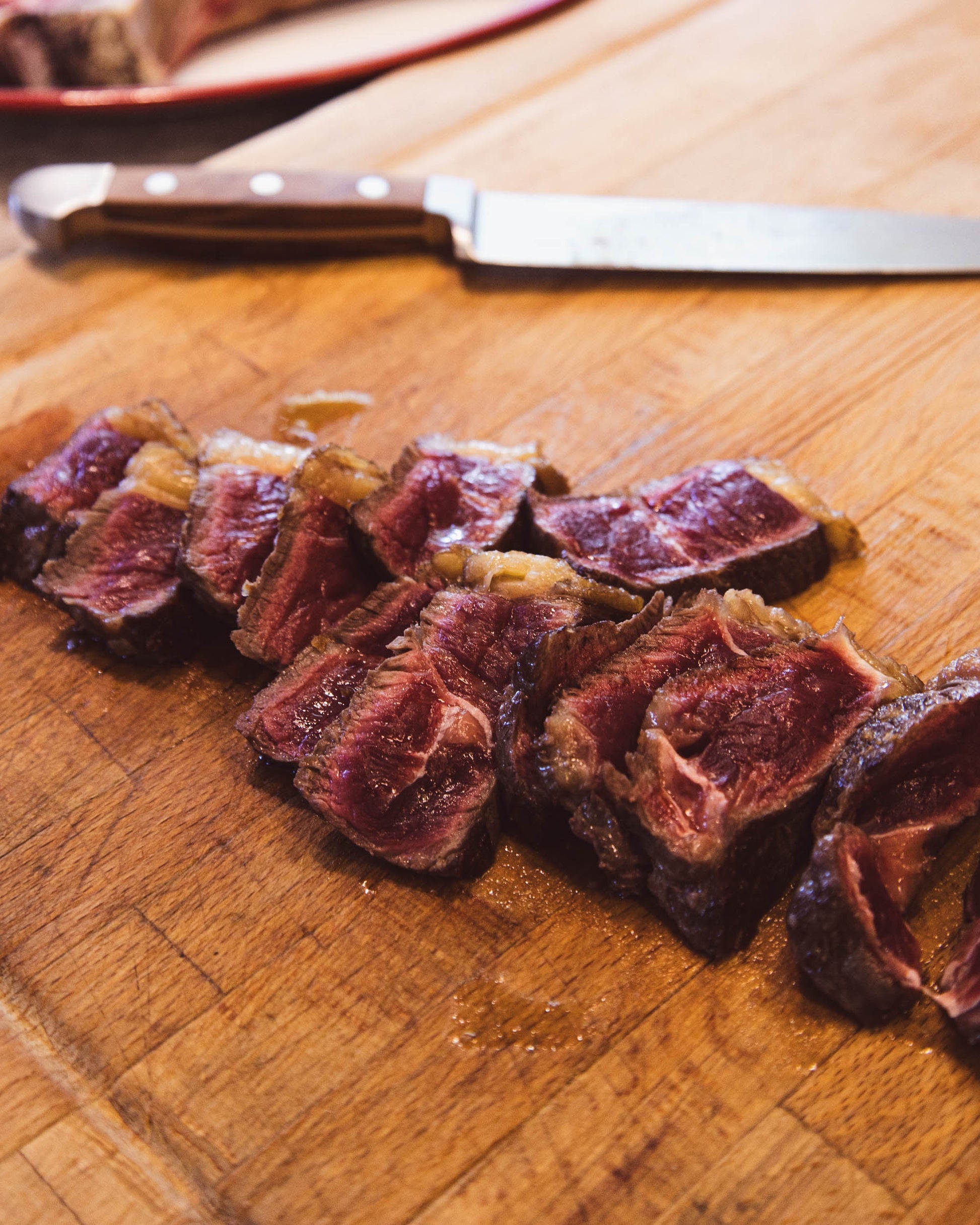 Entrecot de vaca deshuesado procedente de los lomos bajos de vacas de origen lechero (raza Frisona) de grado de infiltración medio.