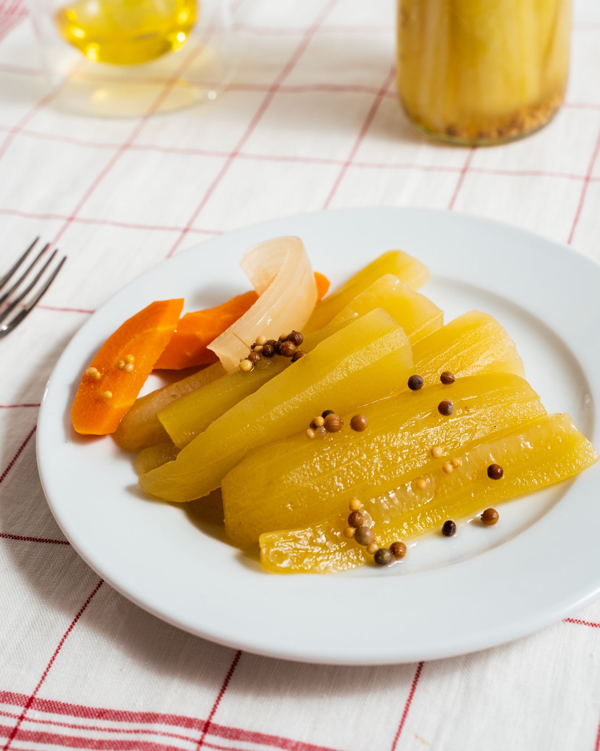 Ingredientes: Pepinos, cebolla de figueras, zanahoria, vinagre de arroz,