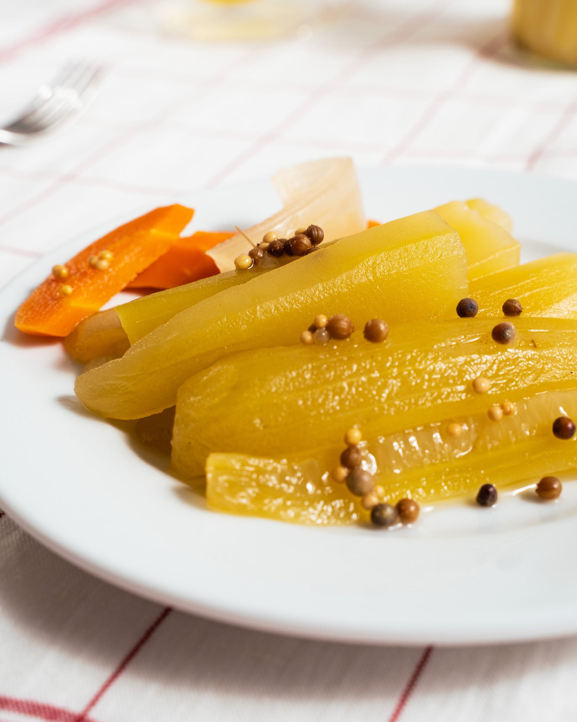 Pepinos encurtidos caseros con la mordida crujiente que los caracteriza junto a un sabor agridulce equilibrado y adictivo.