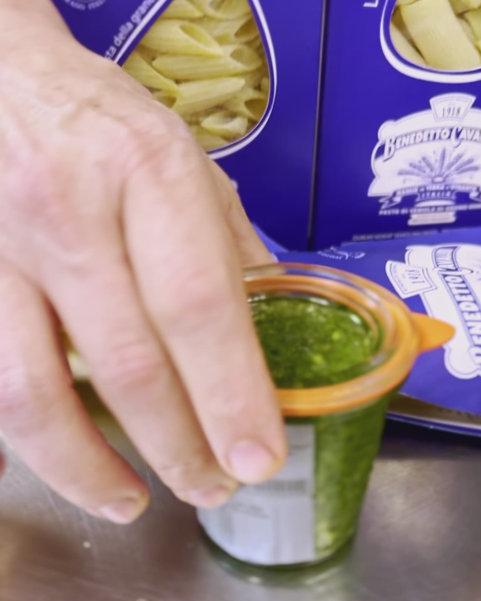 Ingredientes: albahaca, parmesano de 26 meses, piñones, aceite de oliva virgen extra y sal.