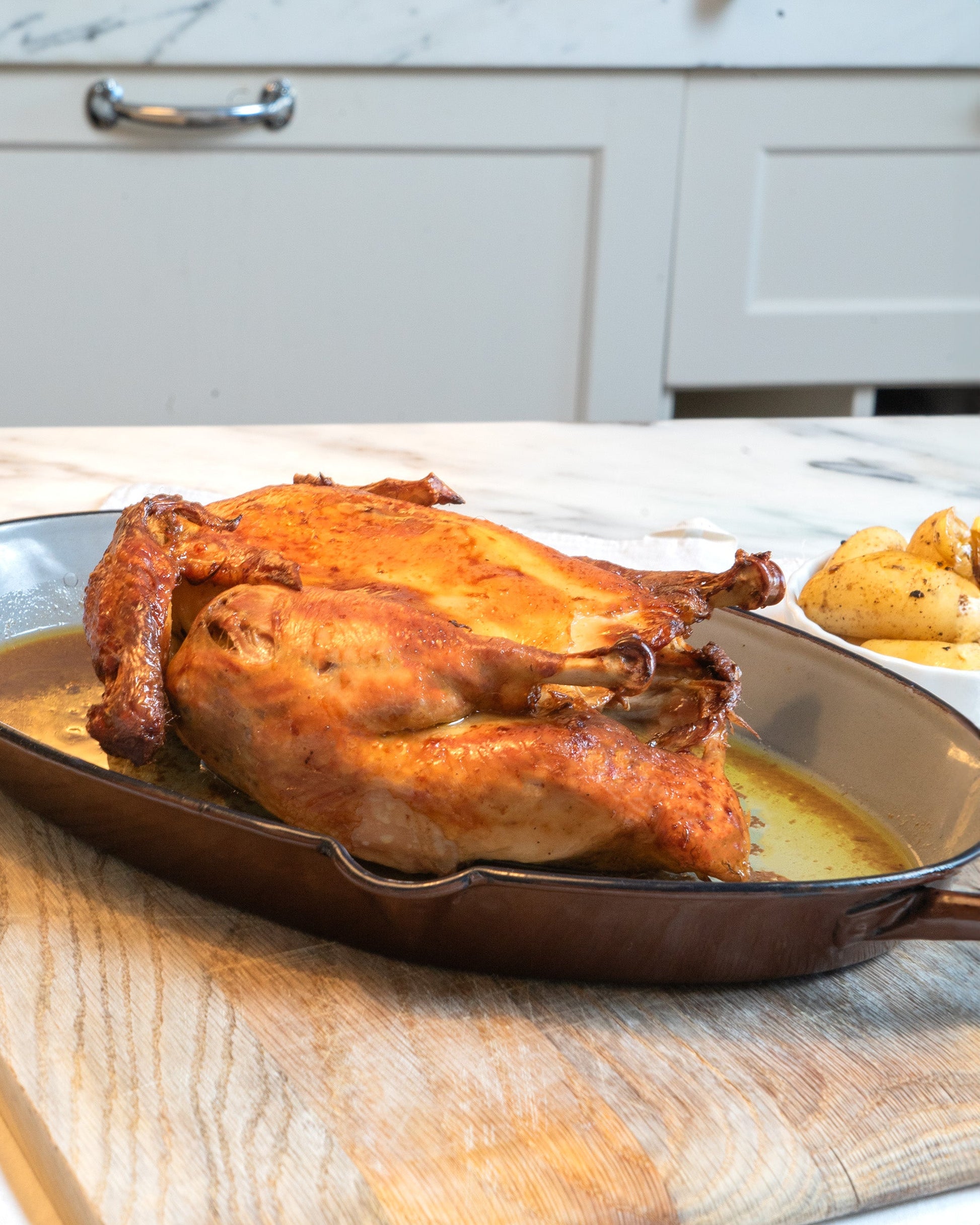 Modo de preparación: Atemperar el pollo 1 hora antes de su cocinado, precalentar el horno a 220 grados, hornear durante 20-25 minutos aproximados hasta conseguir el dorado deseado.