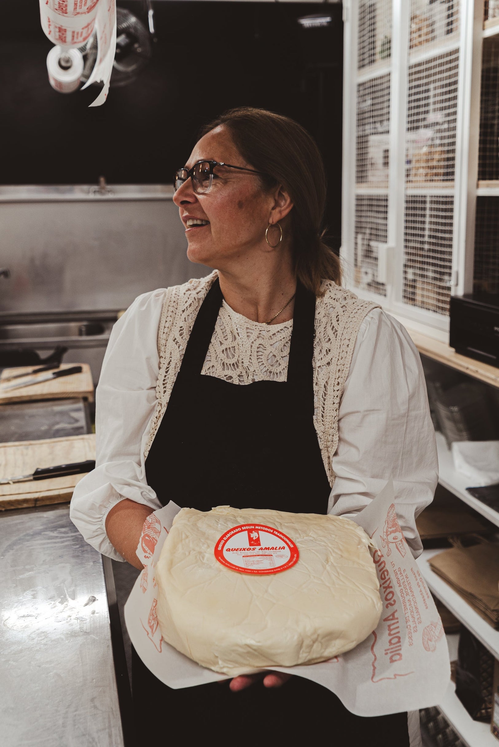 La gran virtud de la leche cruda de vaca es que consigue que cada queso sea único. Para elaborar este, Maricarmen y su familia utilizan leche procedente de Sobrado (Arzúa, A Coruña), donde sus tíos tienen dos pequeñas ganaderías. Ellos no mezclan la leche de la mañana y de la noche: "las vacas comen forrajes y paja durante la noche y pasto durante el día, así que la leche tiene es diferente". Para un queso con mayor acidez y protagonismo de esa leche cruda, utilizan la leche ordeñada al finalizar el día.