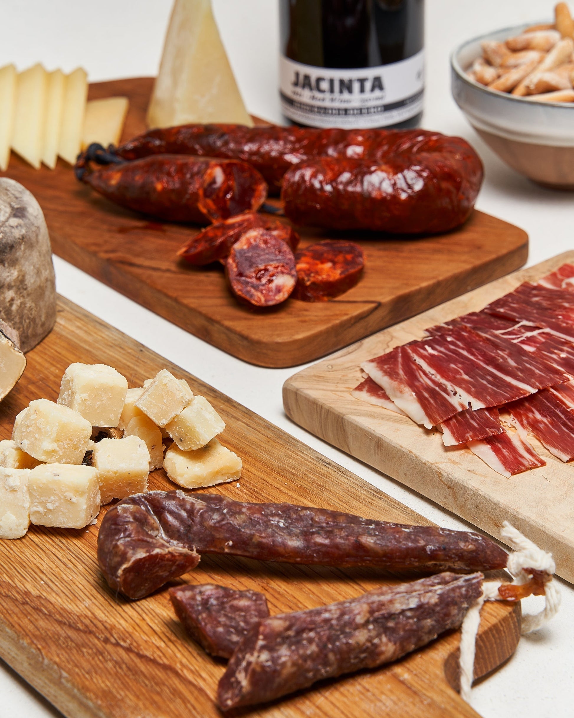• 1 ud. Delicias de la pastora al tartufo: Queso de oveja curado elaborado con leche cruda de oveja de las razas Churra y Castellana, posteriormente cortado a mano con láminas de tartufo blanco del Piamonte.